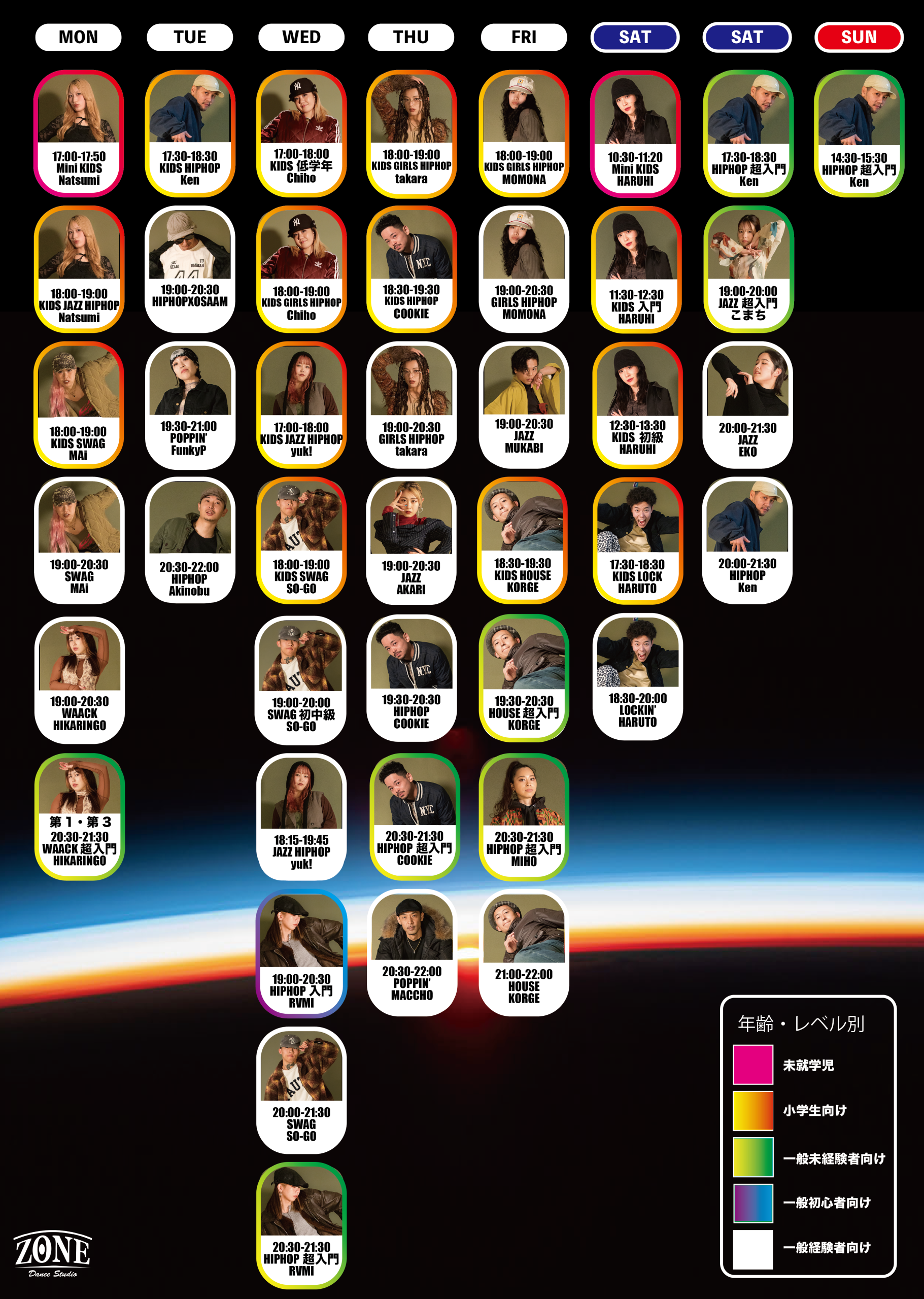 ZONEに入会金はございません。スタッフにお声かけ頂くとメンバーズカードが発行されます。その日からあなたはZONEの仲間! レッスン料金の支払いシステムは、あなたのレッスン頻度に合うものを選んでください。いつでも変更可能!
