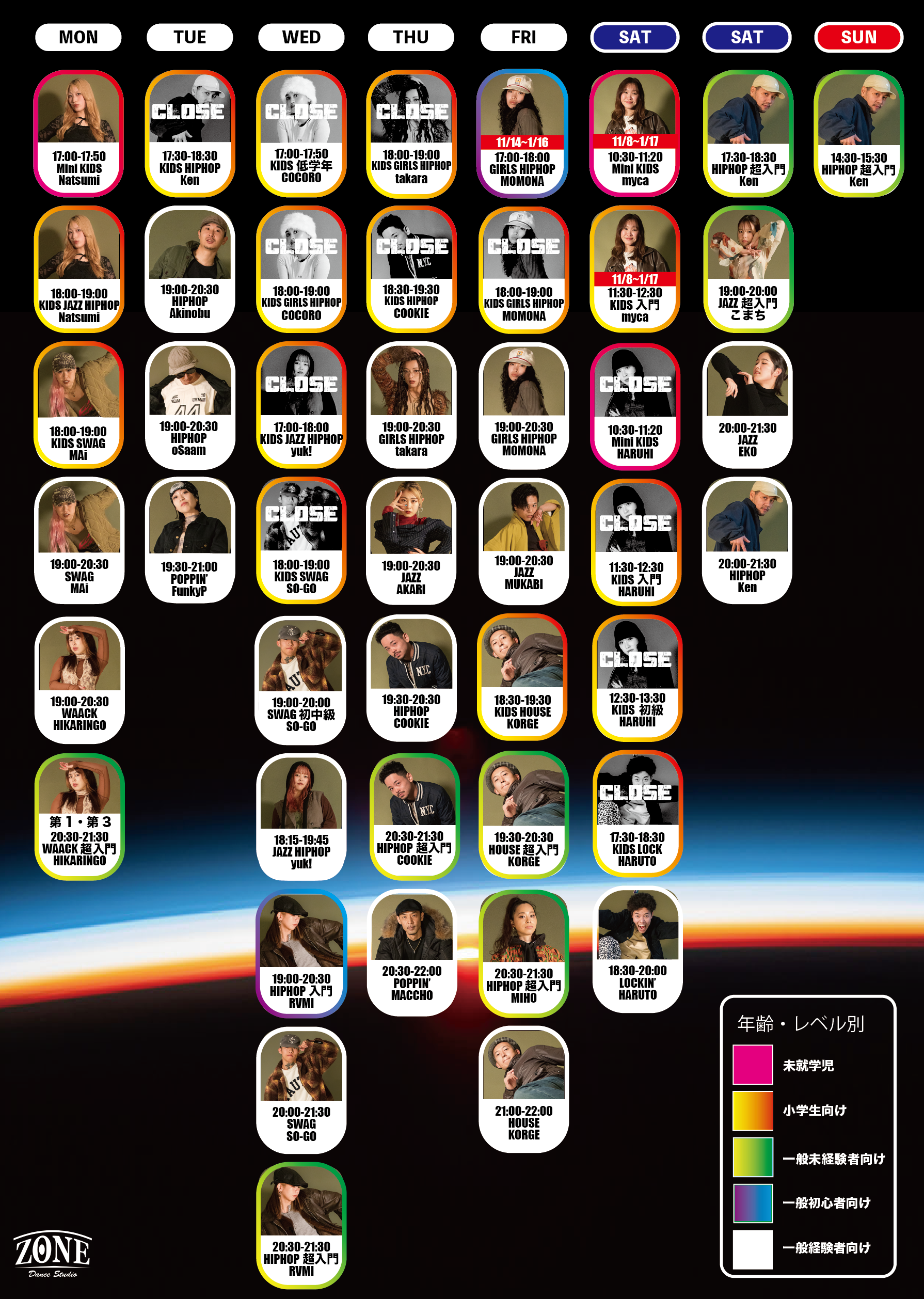 ZONEに入会金はございません。スタッフにお声かけ頂くとメンバーズカードが発行されます。その日からあなたはZONEの仲間! レッスン料金の支払いシステムは、あなたのレッスン頻度に合うものを選んでください。いつでも変更可能!